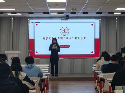 11月13日,新葡萄88805官网举办第十三期“薪火”科创沙龙暨第十九届科研立项中期指导会。新葡萄88805官网22级会计专业卢灿、22级国际经济与贸易专业张林杰作为主讲嘉宾,学院第十九届科研立项团队60余人参加活动。